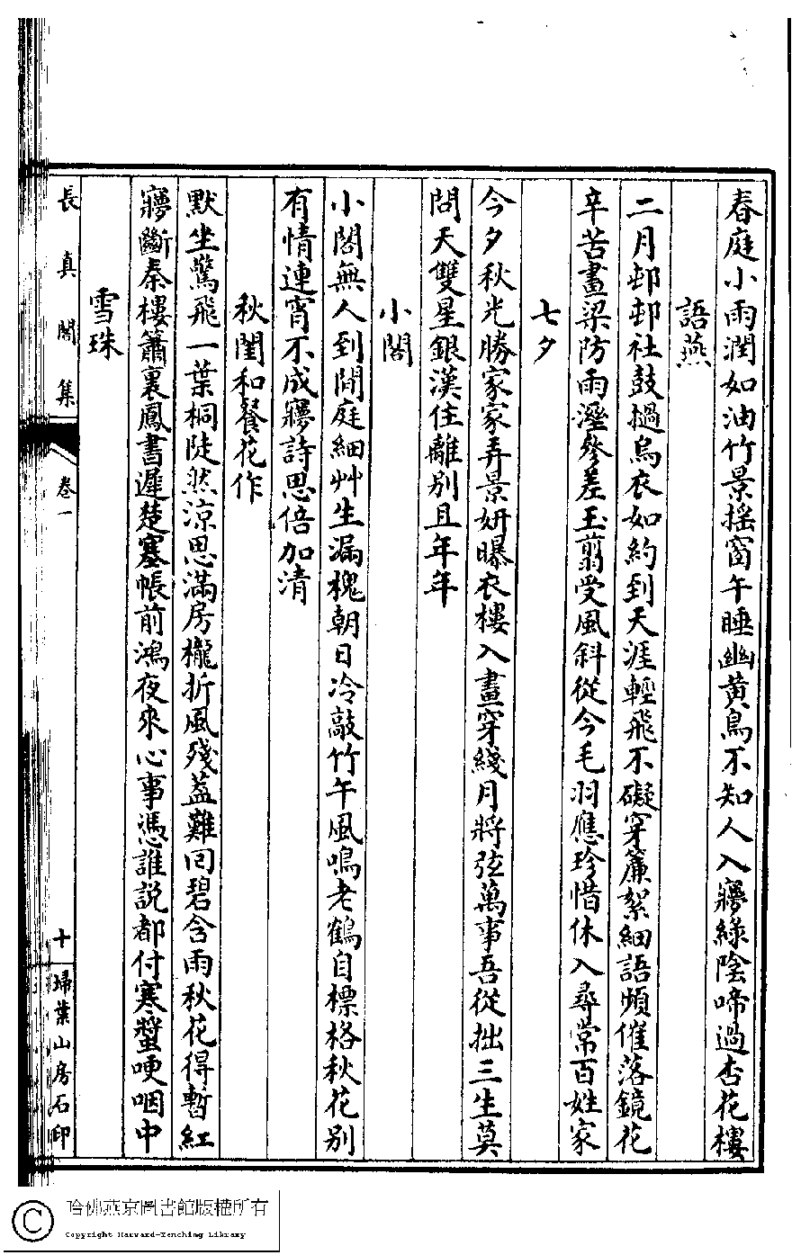 | Appears in: Chang zhen ge ji: 7 juan, shi yu 1 juan (by Xi Peilan, Qing dynasty) |