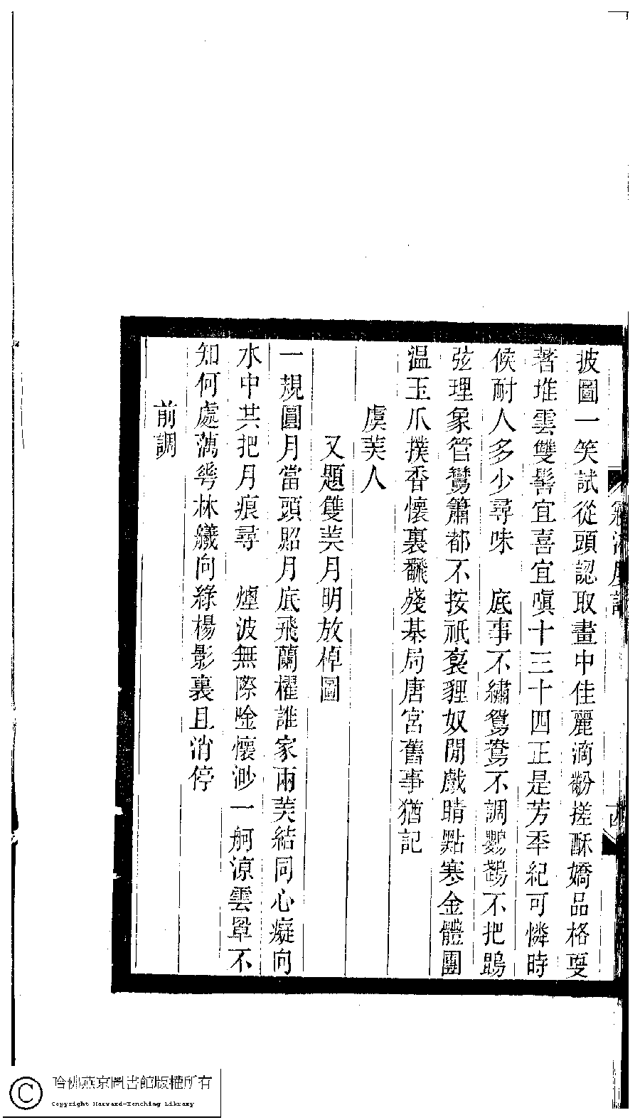 | Appears in: Xiao tan luan shi hui ke gui xiu ci: 10 ji 100 zhong 100 juan (edited by Xu Naichang, Qing dynasty): Meng xiang lou ci: 1 juan |