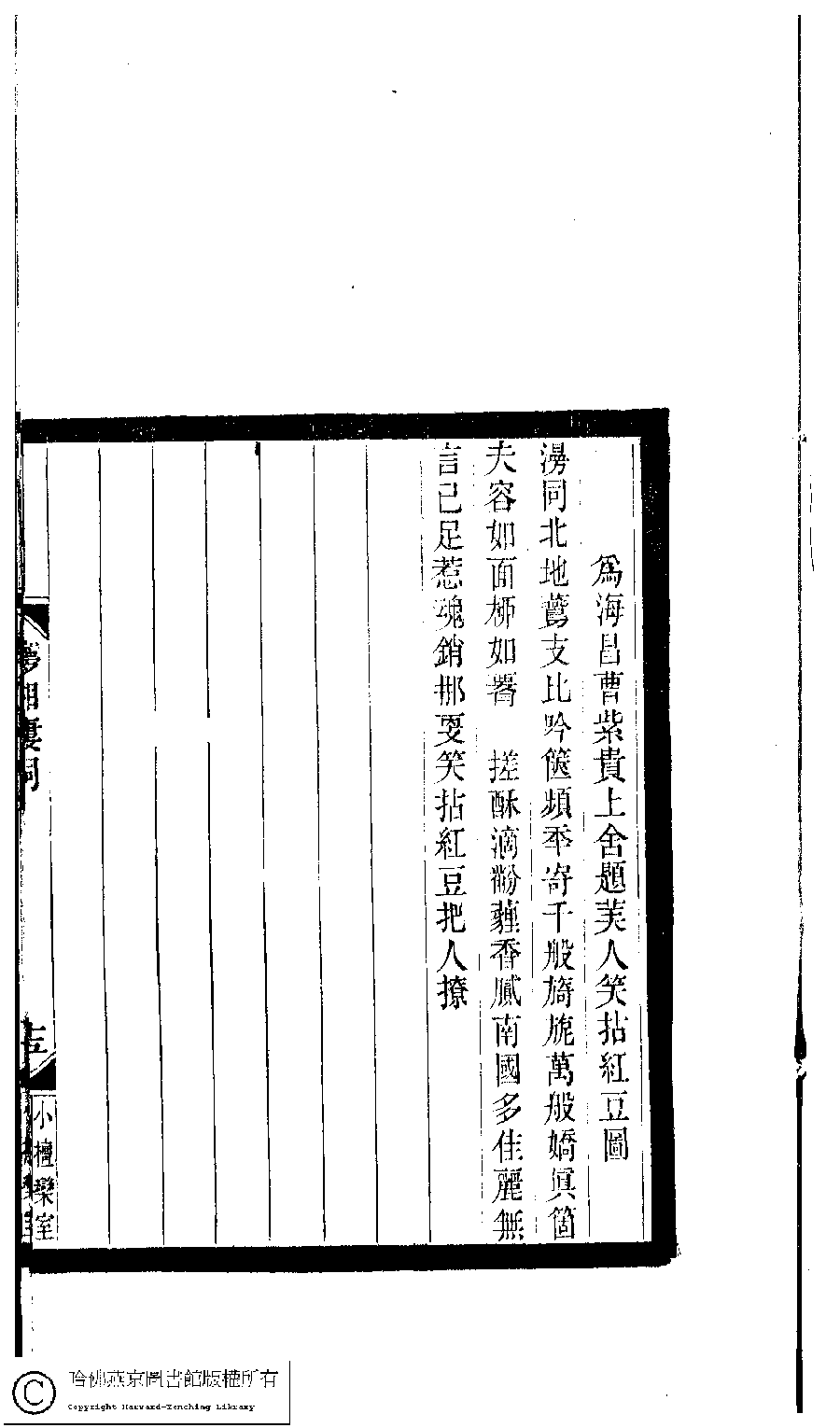 Poem [Qian diao[Yu mei ren] : Wei Haichang Cao Zigui shang she ti Mei ren xiao nian hong dou tu]