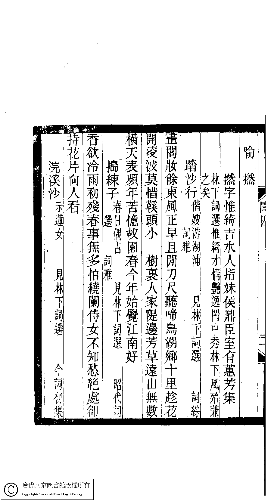 | (PRINT FRIENDLY VERSION) 閨秀詞鈔﹕十六卷(清徐乃昌輯)。清宣統元年(1909)小檀欒室刻本。 ![]() Page : 4.21b | click for larger image | Back |
