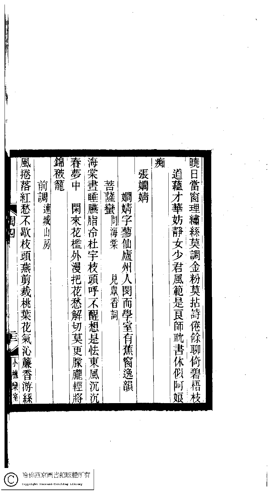 | (PRINT FRIENDLY VERSION) 閨秀詞鈔﹕十六卷(清徐乃昌輯)。清宣統元年(1909)小檀欒室刻本。 ![]() Page : 4.22a | click for larger image | Back |