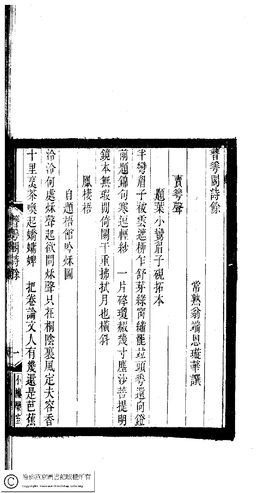 | Appears in: Xiao tan luan shi hui ke gui xiu ci: 10 ji 100 zhong 100 juan (edited by Xu Naichang, Qing dynasty): Zan hua ge shi yu: 1 juan |